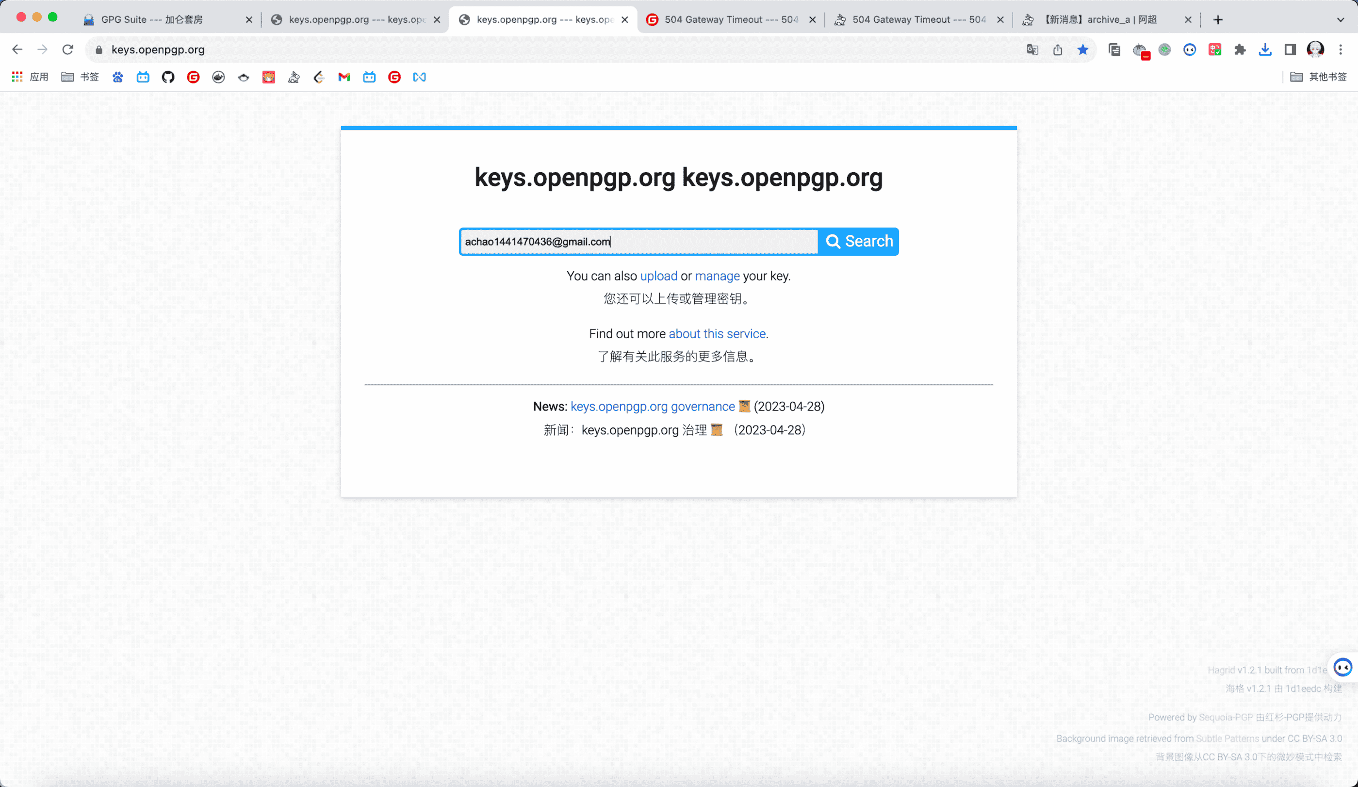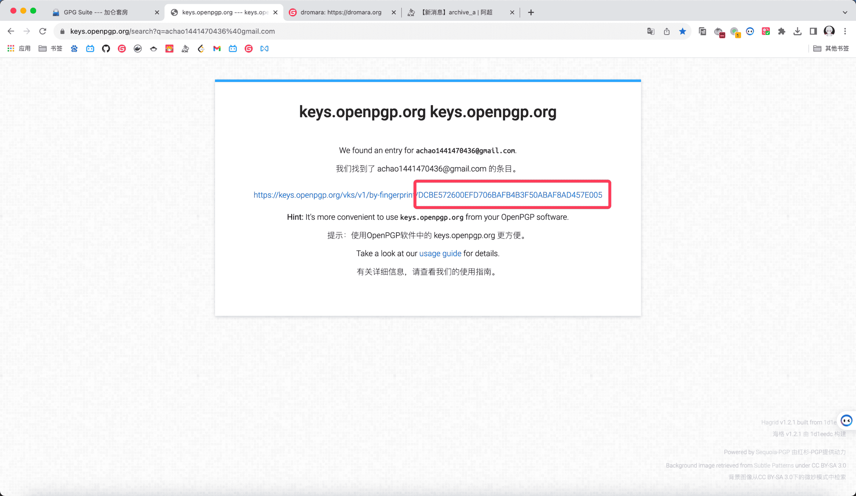 验证后可以填入邮箱点https://keys.openpgp.orgsearch去验证一下: