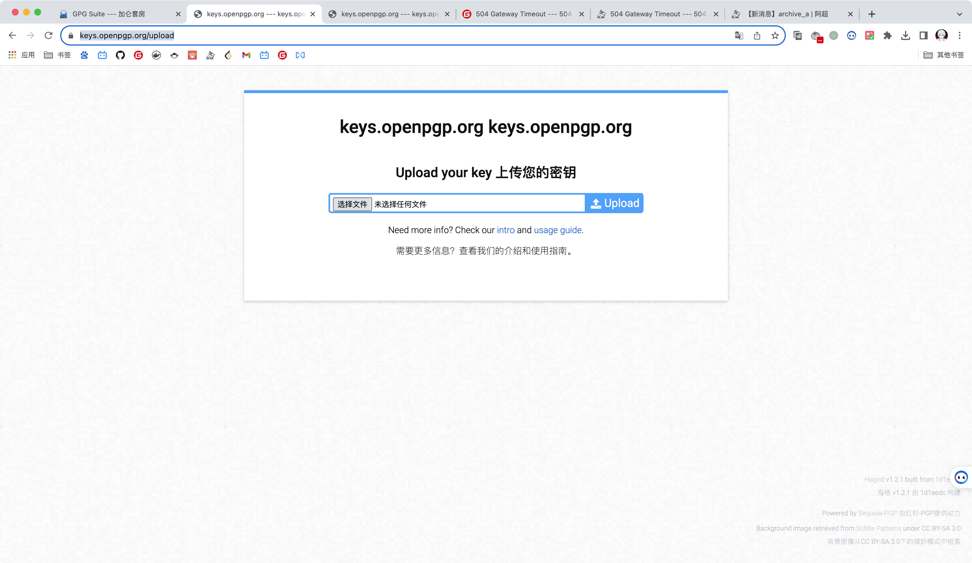 然后点https://keys.openpgp.org页面中的Upload进入keys.openpgp.org/upload