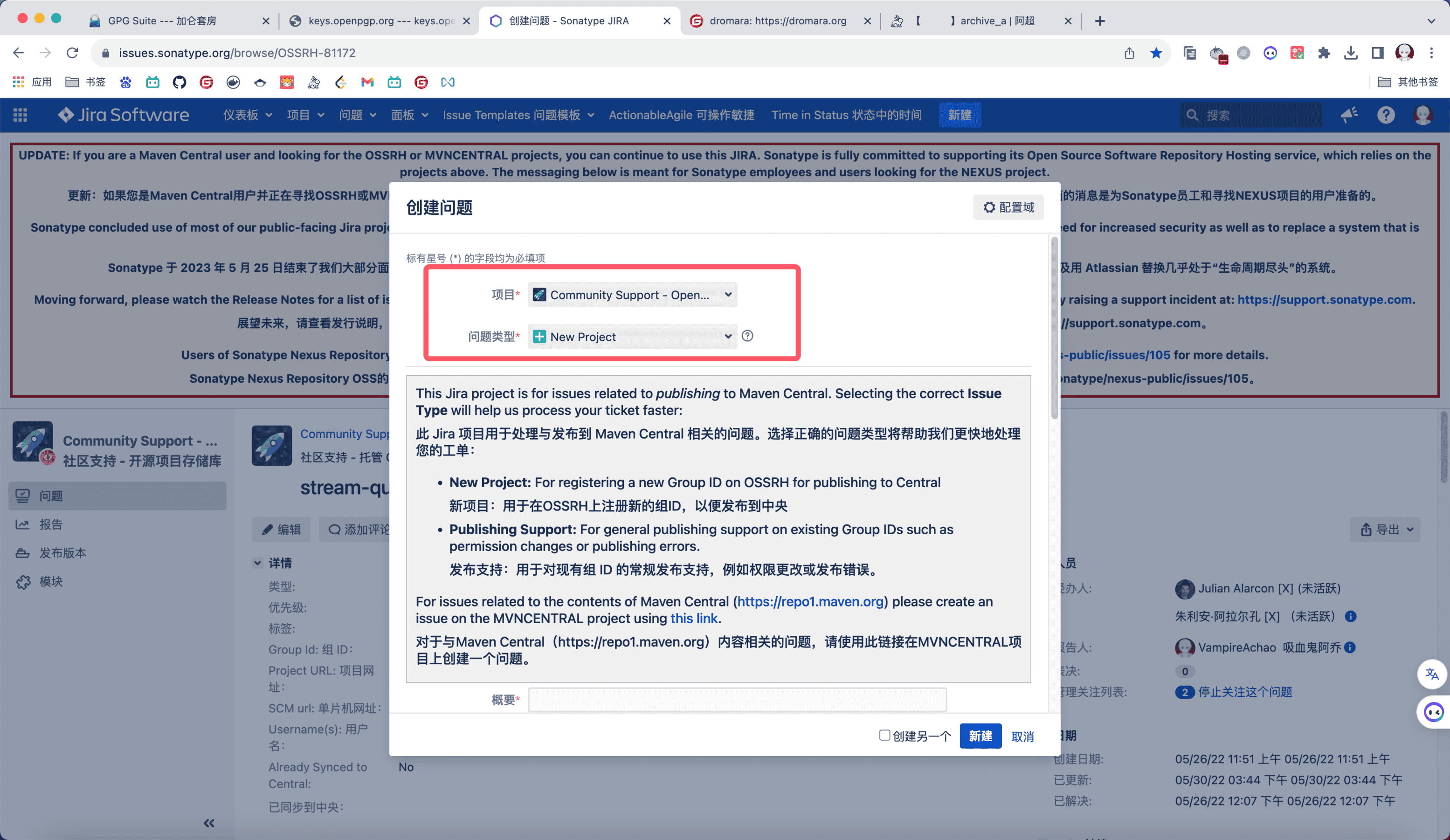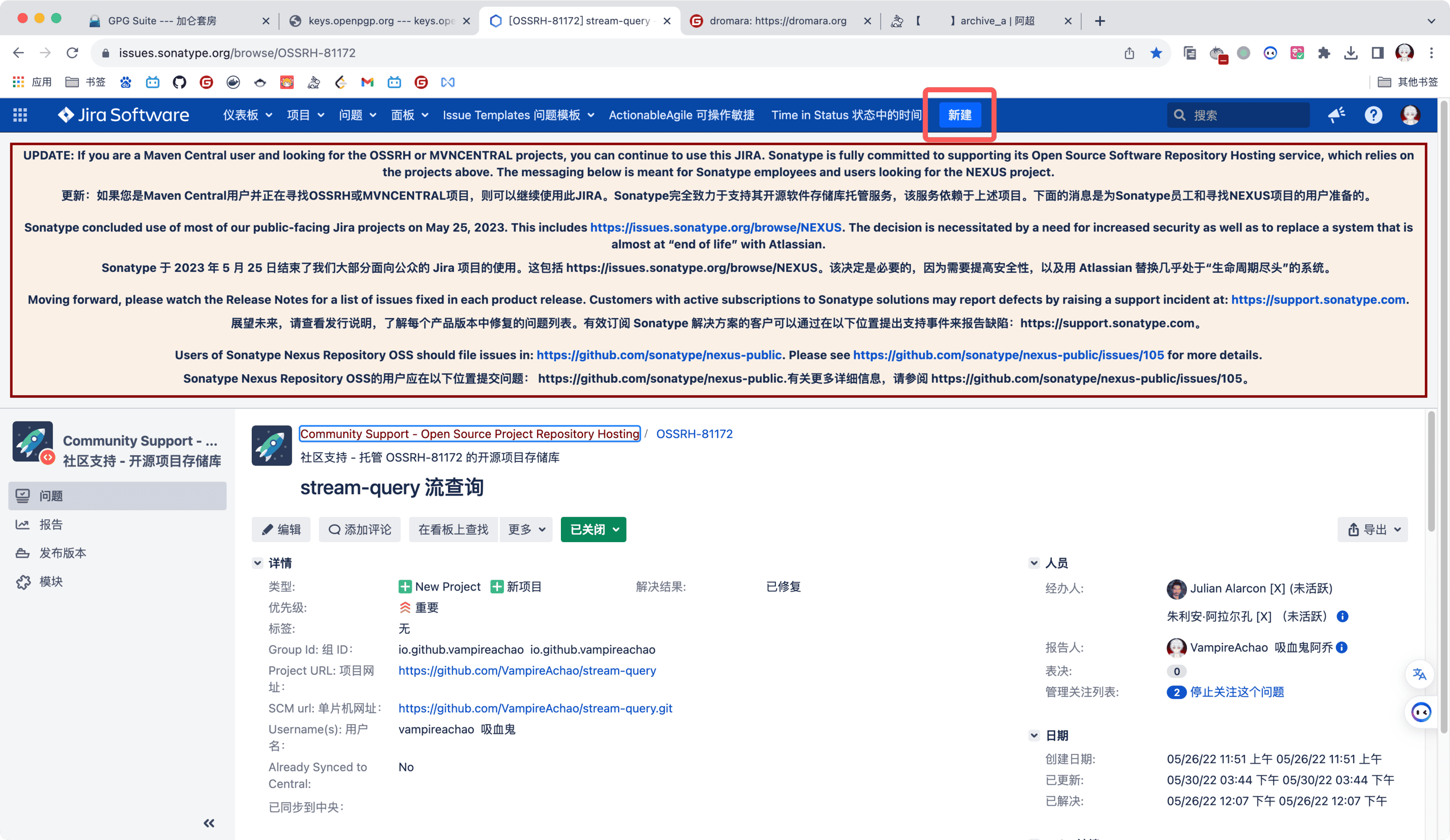 注意新申请的是这个s01.oss.sonatype.org