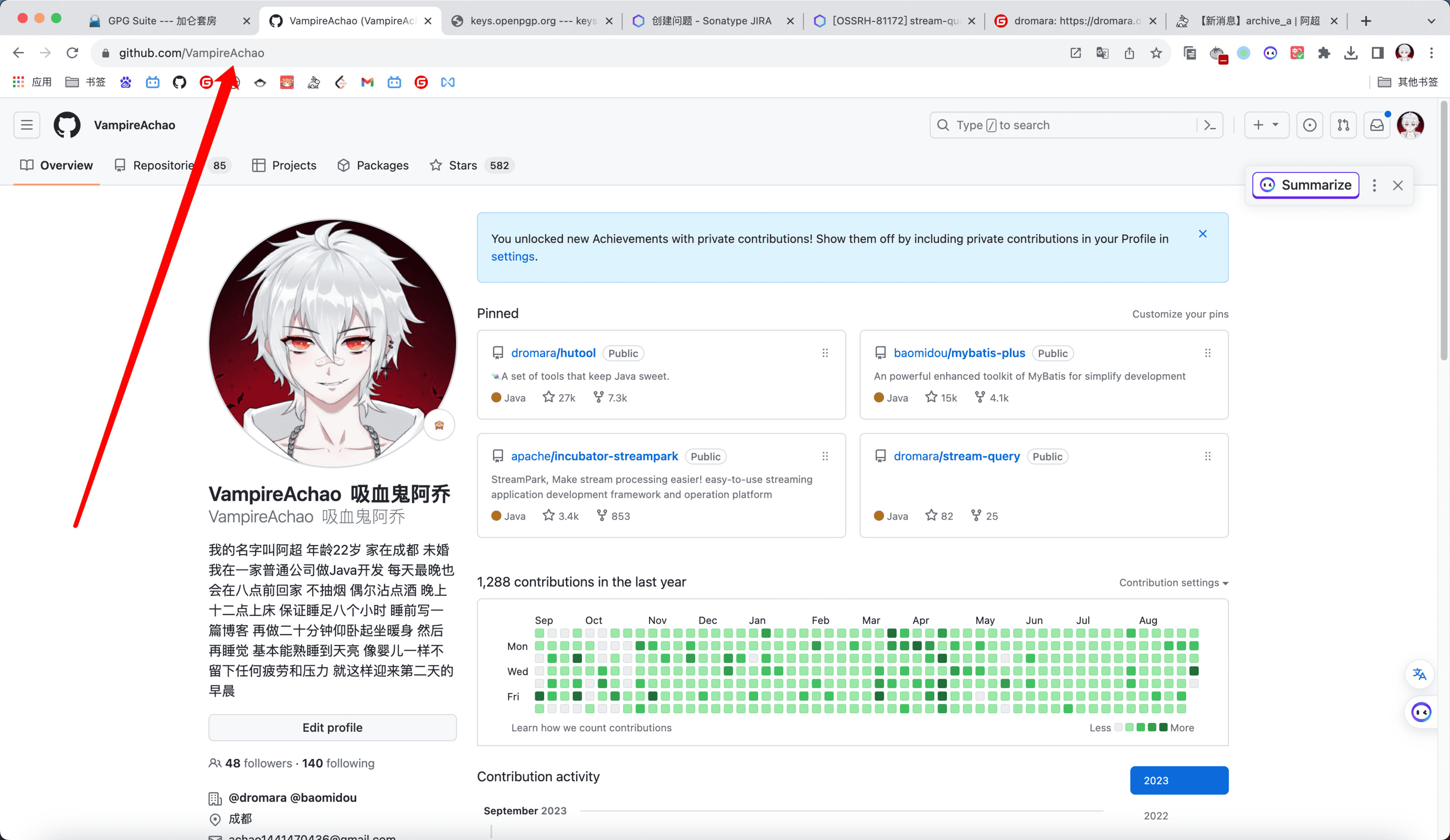 如果是使用dromara组织,将用户名提供给组织后,组织去操作,用户名就是点头像,这一项