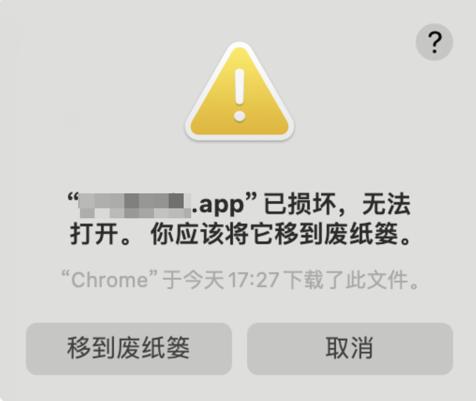 xxx.app已损坏,无法打开。你应该将它移到废纸篓